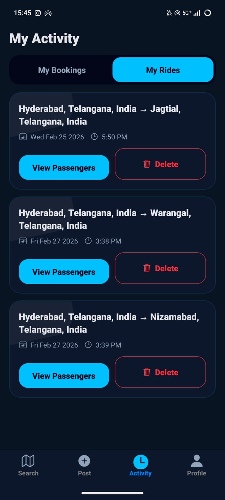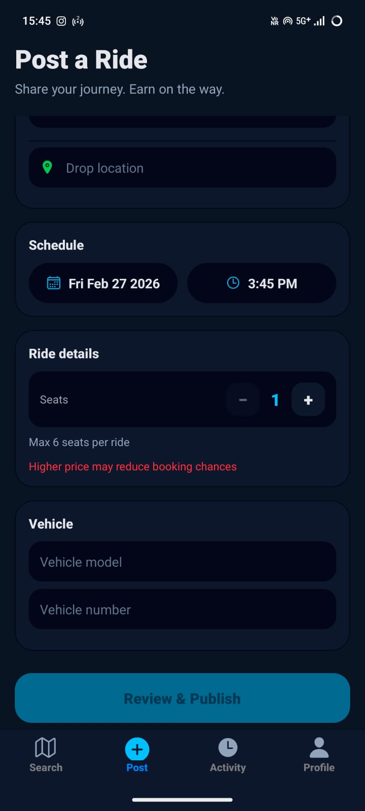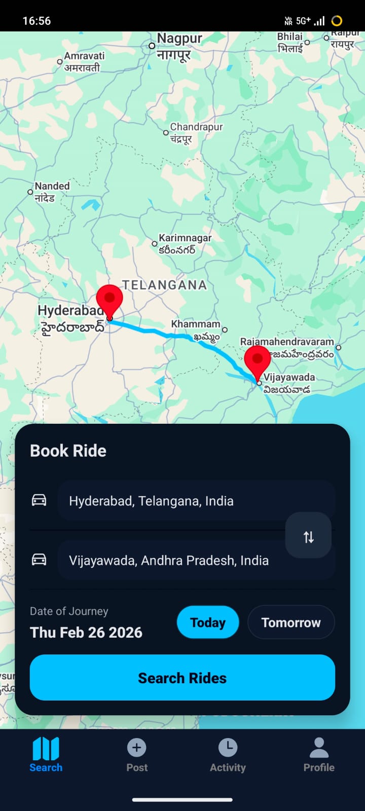 Drivers publish routes. Riders discover matching intercity trips.